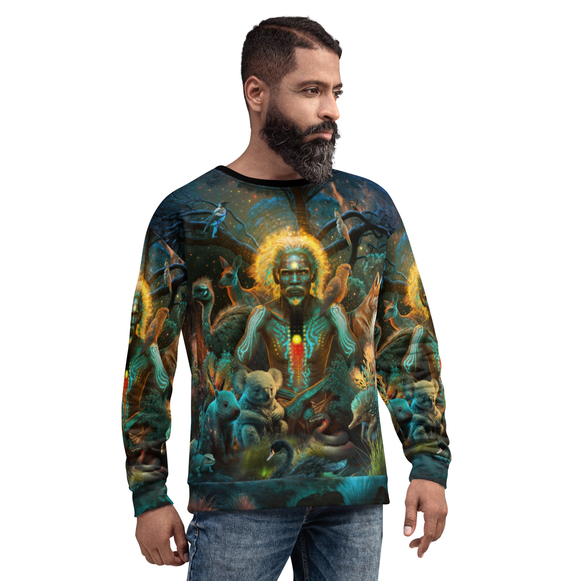 Each unique, all-over printed sweatshirt is precision-cut and hand-sewn to achieve the best possible look and bring out the intricate design. What's more, the durable fabric with a cotton-feel face and soft brushed fleece inside means that this sweatshirt is bound to become your favorite for a long time.